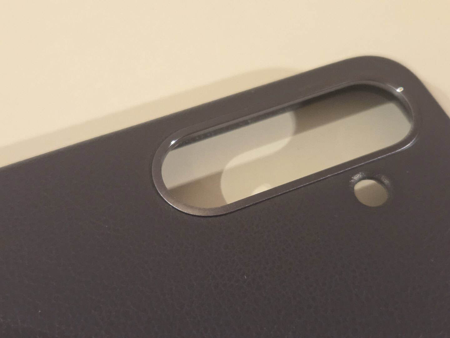 Mit dem Kunstleder liegt das Case angenehm und sicher in der Hand. Im direkten Vergleich ist eine Echtlederhülle ala Wiiuka Skiin fürs S23 aber noch einmal griffiger und "klebriger" an. Das schwarze Samsung Galaxy S25 Kindsuit Case ist keineswegs schwarz, sondern maximal dunkelgrau. Bei guter Beleuchtung geht es sogar ins Gräuliche. Die Hülle ist alles, nur nicht schwarz.